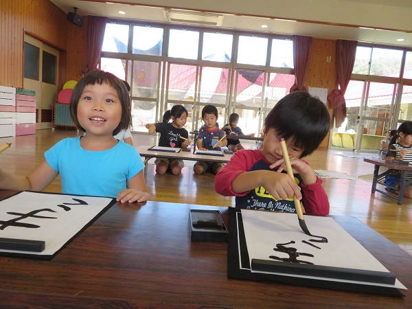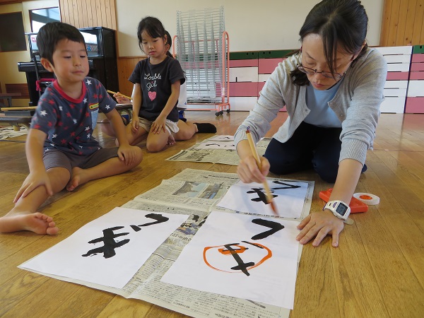 習字に触れながら、毎月季節にちなんだ文字を書いています。
