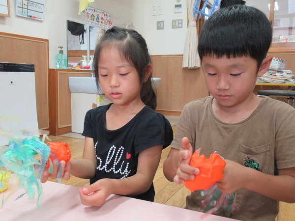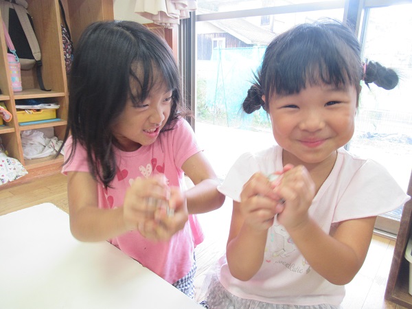 ギュッと力を入れた後の、この繊細な作業・・・指先の力加減も遊びながら身につけます。