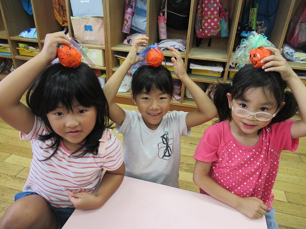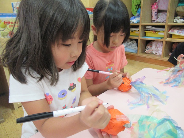 仕上げに、マジックでかわいいお顔を描いて・・・