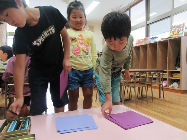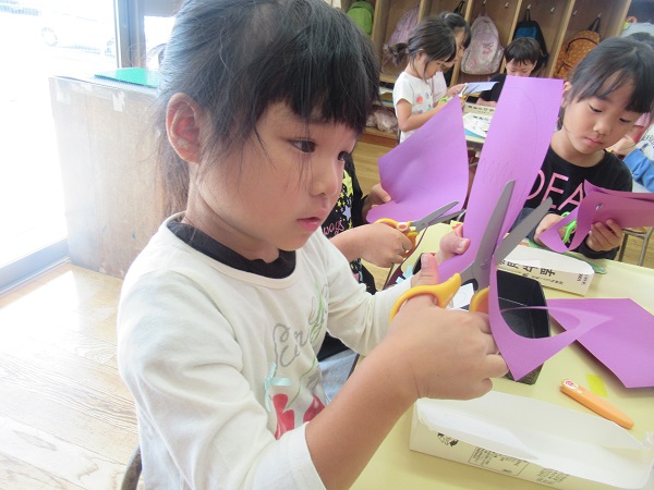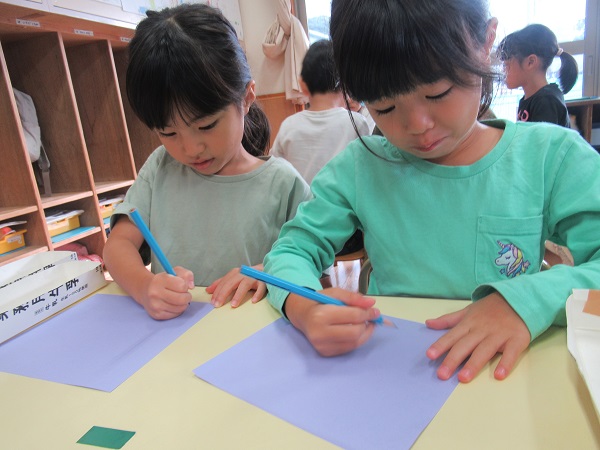 好きな色の画用紙や鉛筆など必要なものを取り、製作スタートです。