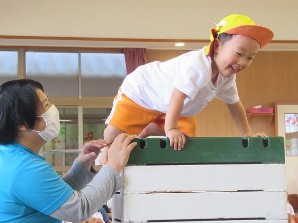 13段の巧技台を登ることができたお友だちもおり、「すごい!!」と驚くろけっと組さん。