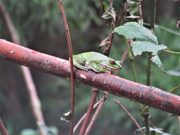 しばらく歩くと、今度は天然記念物の『モリアオガエル』が木で休んでいました■
