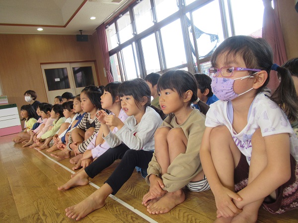今月の誕生会はどんな楽しいことがあるのかワクワクの子どもたち!