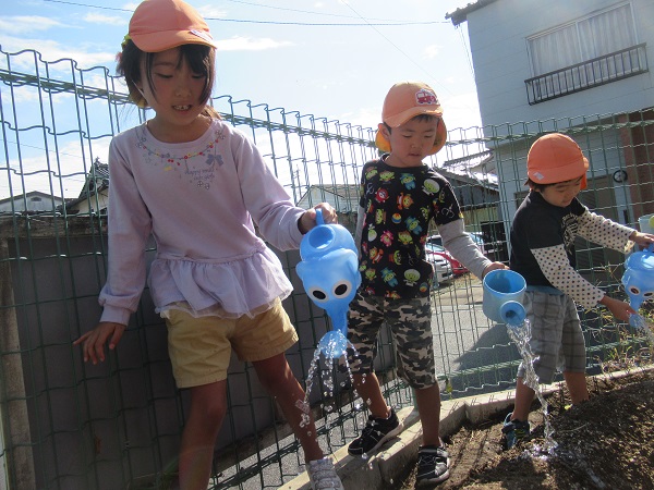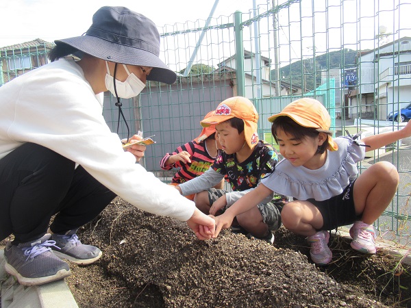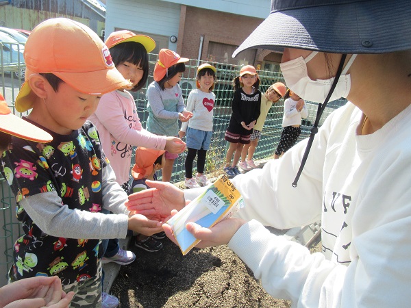 誕生会後は大根の種を植えました。