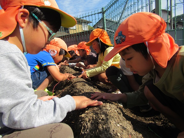 「おおきくなあれ!おいしくなあれ!」と何度も唱えて、食べられる日を楽しみにしている子どもたちです!