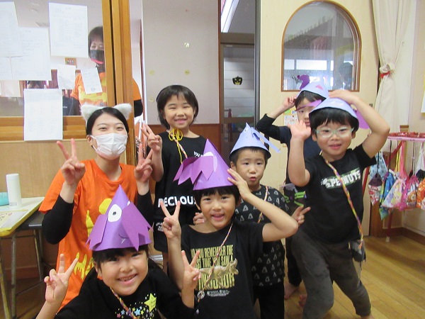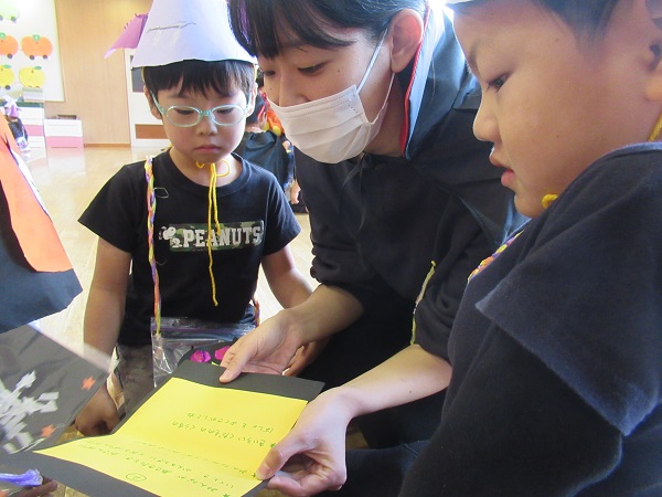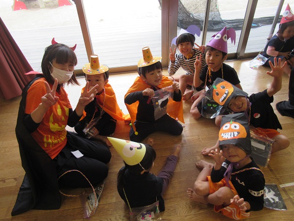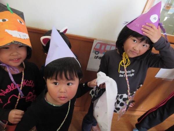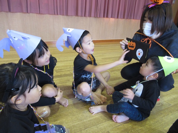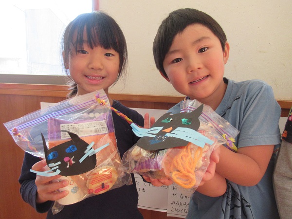 宝探しで見つけた袋の中には、ハロウィンごっこでプレゼント交換するために各クラスで作った『いいもの』が入っていました。