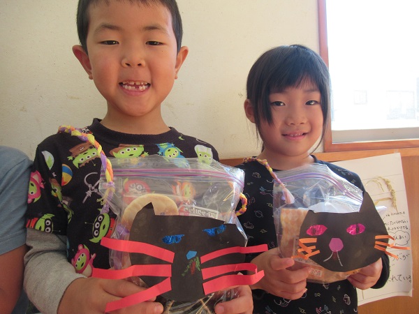 地域の方からもお菓子をいただき、みんなの黒猫ポシェットはパンパンに...!!