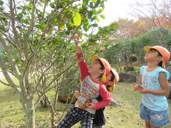 高い所にある実は、保育者やお友だちと協力し合いながらGETしました!!