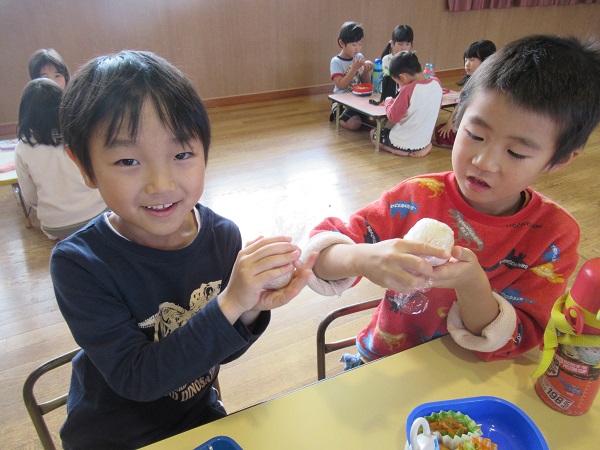 炊き出し訓練とお弁当ごっこがありました。