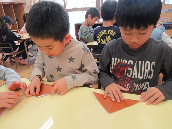 サンタさんよりも難易度が上がり難しかったですが、お友だちと協力しながら折ることができました。