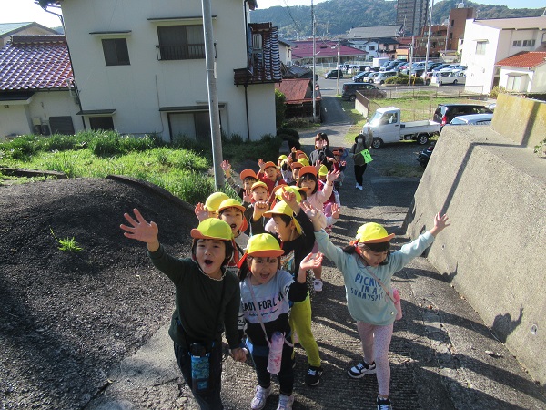 近場のお散歩でしたが、のんびりと好きな遊びを大好きなお友だちと楽しむことができたろけっと組さん。