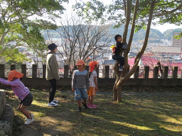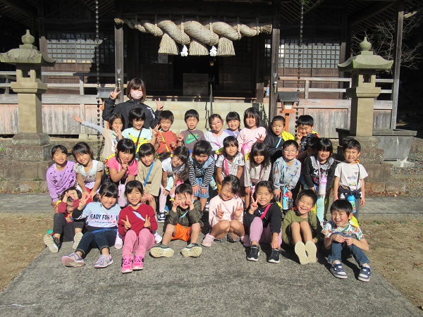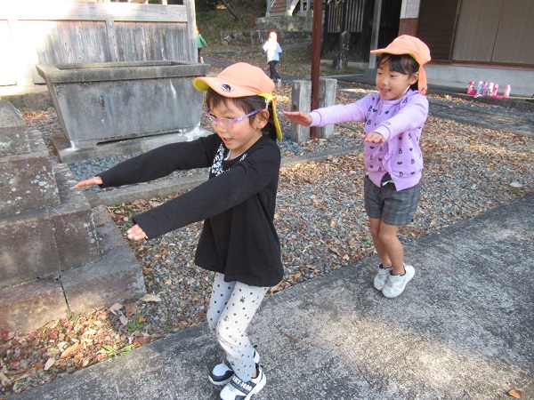 お弁当ごっこの準備まで、喜多の宮へお散歩に出かけました。
