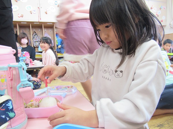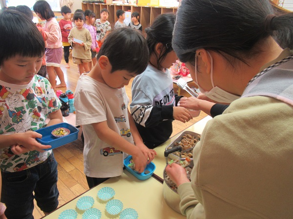 保育園に帰ってからは、楽しみにしていたお弁当ごっこ♪