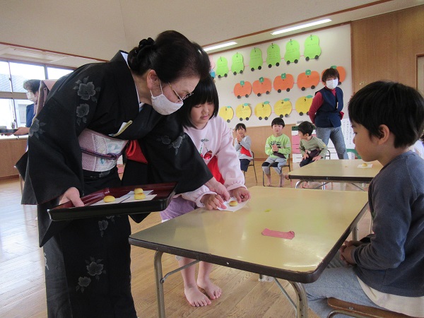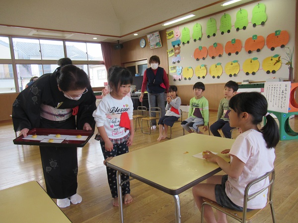 お茶を点てるグループ、お点前をいただくグループ、そしてお運びさんをするグループに分かれ、順番にお稽古しました。