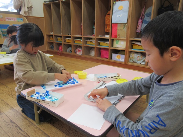 お稽古を待つ時間は、お部屋で千切り絵に挑戦しました。