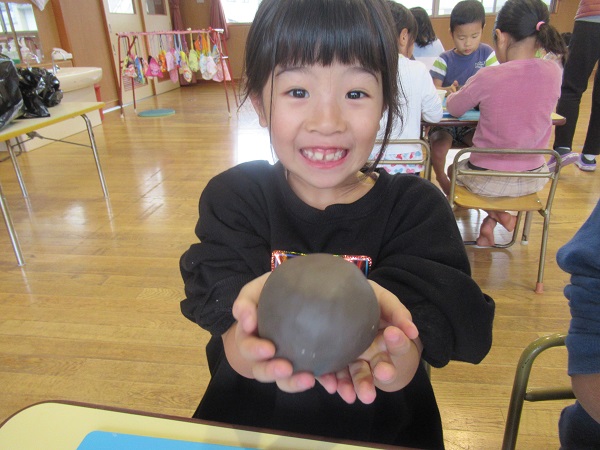 粘土を丸い形に整えます。
