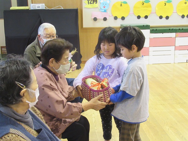 そしてもう一つ、子どもたちが作った飾りをつけたしめ縄をプレゼントしました。