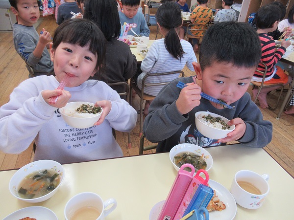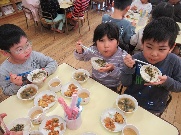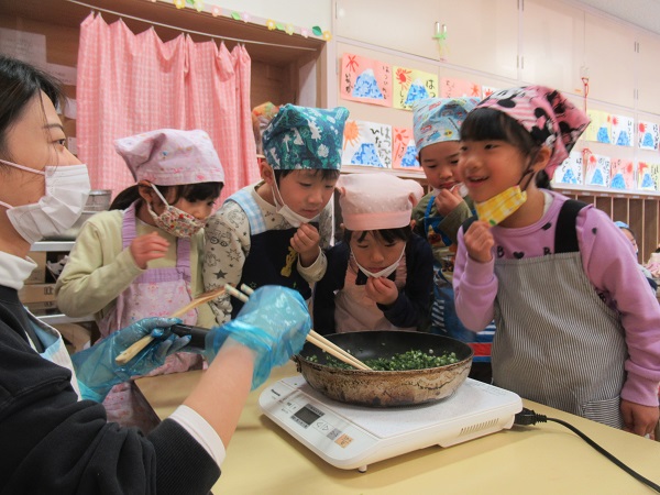 「いいにおいがしてきた❤」と嬉しそうな子どもたち。