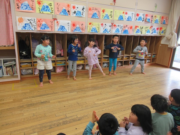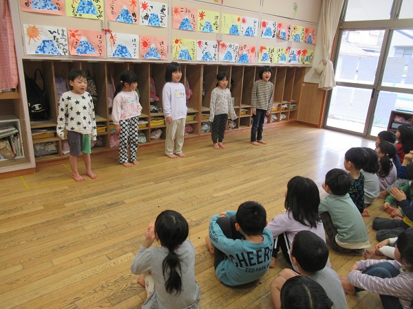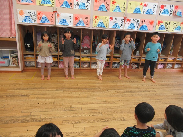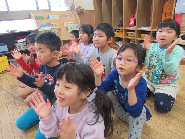 手拍子をしたり、体を揺らしたりしてノリノリな子どもたち■