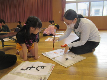姿勢を正していざ本番!半紙に書いてみるとやっぱり難しい...それでも頑張って書きましたよ!