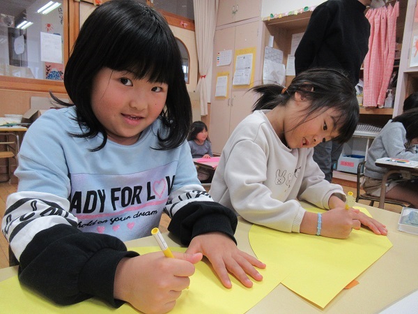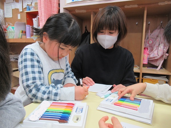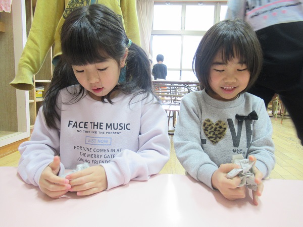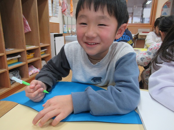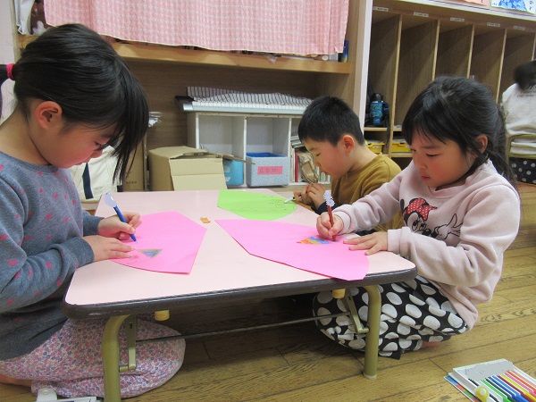 あと一カ月後はおたのしみ会本番の日!ということで、おたのしみ会で使用する小物づくりをしました。