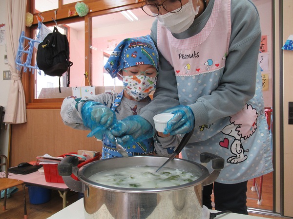 七草粥クッキングをしました。