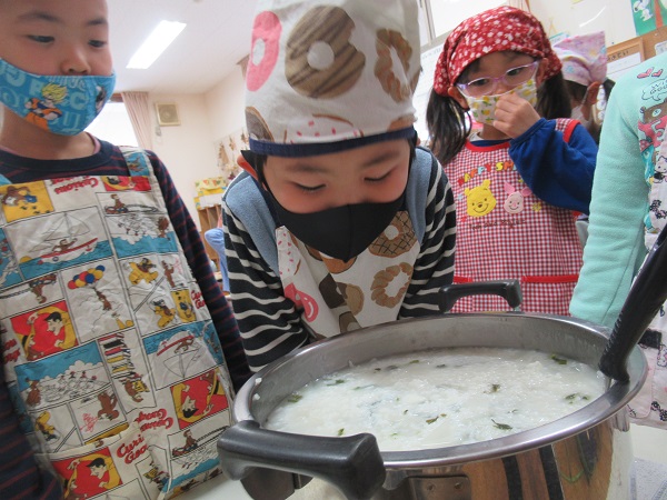 グツグツと煮込んで、七草粥が完成しました!