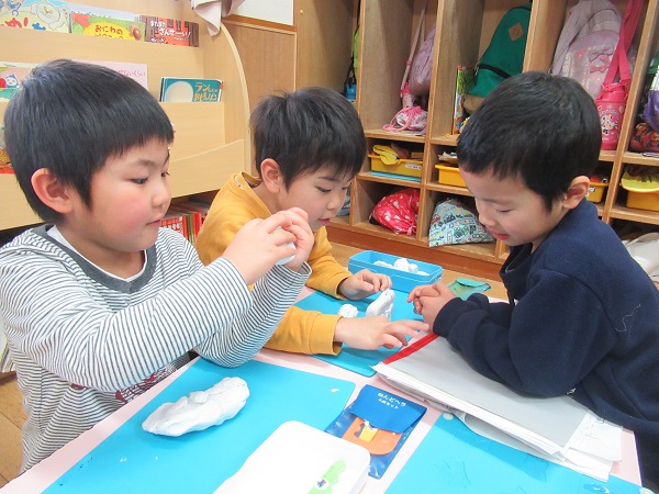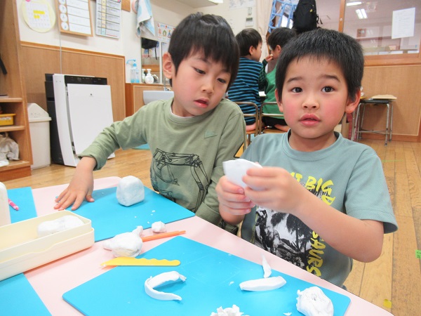 お絵描きか粘土遊びを選び、お友だちと一緒に楽しみました。