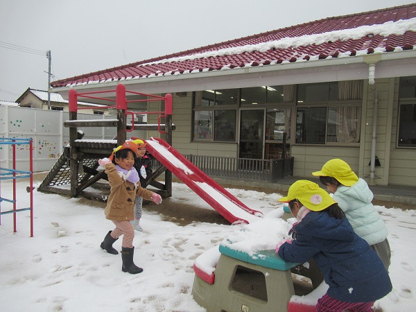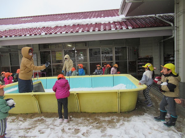 毎日おたのしみ会の練頑張っているみんなの期待に応えて、雪遊びをしました。