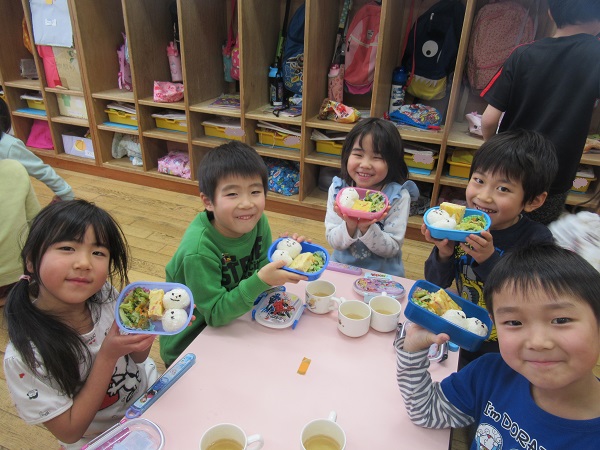 握ったおにぎりに担任が顔を描きました☺
