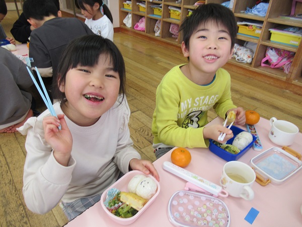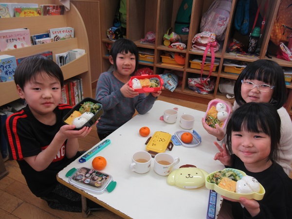 たくさん遊んで、お楽しみ会の練習もしっかりした後は、お待ちかねのお弁当ごっこの時間⏰