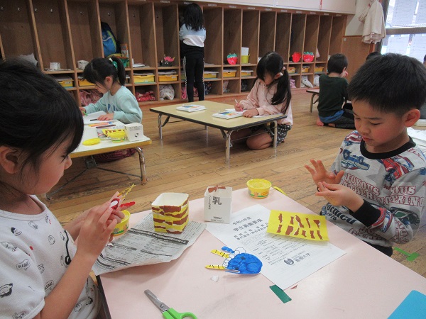 そして今日も、節分に向けての製作を進めたり、粘土やお絵描きをしたりしてゆったりと過ごしました。