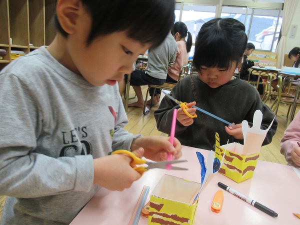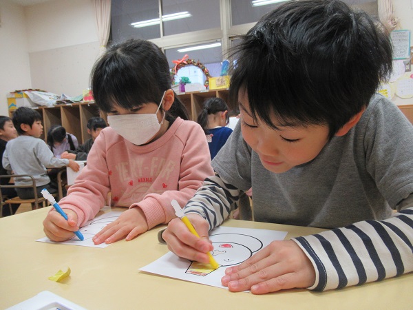 2022年01月31日 どんな顔?自分の顔を描きました。自分がどんな顔をしているのか鏡で確認します■鼻や目はどんな形かな?先ほど見た自分の顔を思い出しながら描いていきます。帽子や体も自由に色塗り♫できあがった絵は大田警察署で掲示していただきますので、お楽しみに!ストローを使った製作もしました。はさみで1センチほどに切っていきます。集中して黙々と取り組んでいたろけっと組さん!何ができあがるのかはまだ秘密です☺
