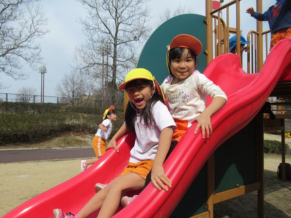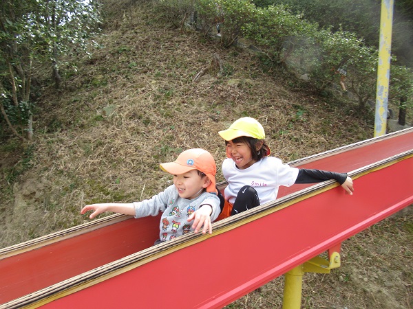 写真を撮ると、「もう遊んでいい?」「ローラーすべり台やりたいな!!」と、ワクワクが止まらないろけっと組さん♪