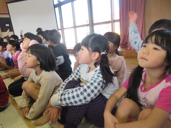 「バナナかな?」「テントだと思う!」と予想して楽しむ子どもたちでした!