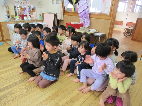 「座っていいよ」と、みかん組さんに椅子を譲ってあげたお友だちがいましたよ✨