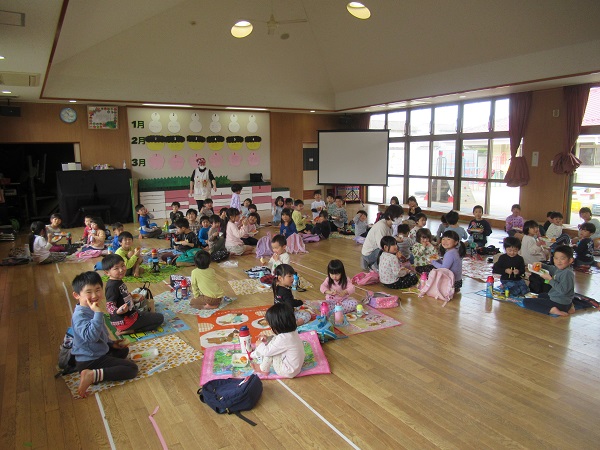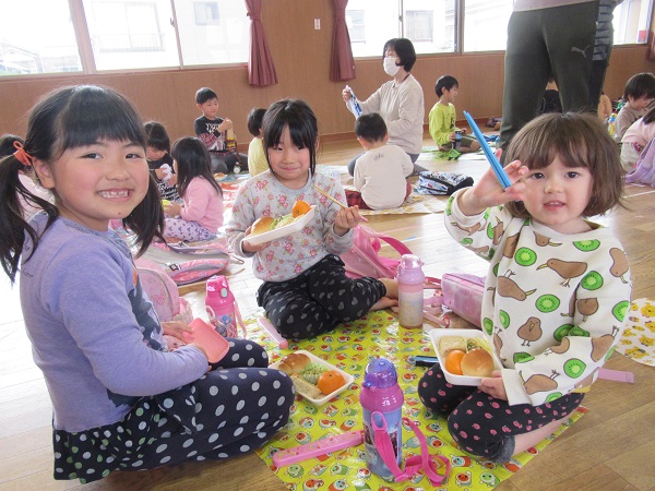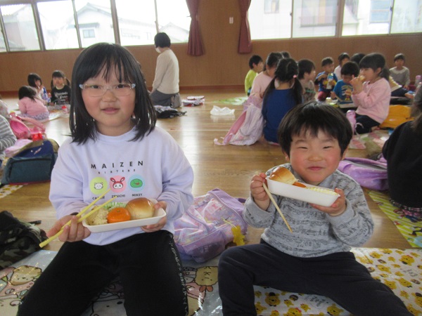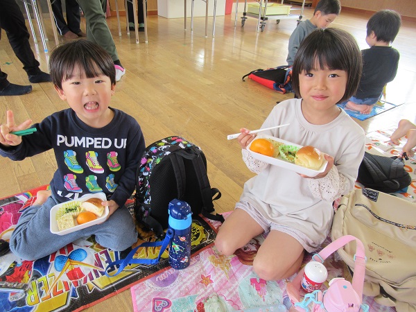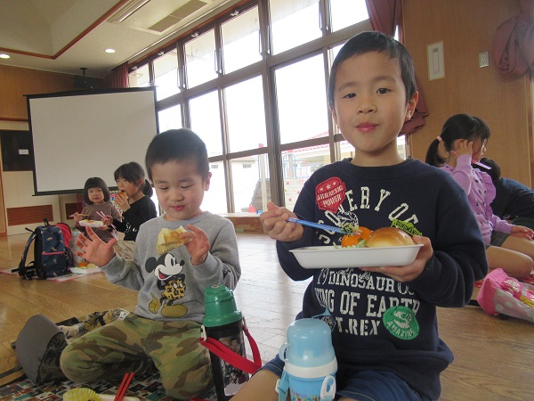 遊戯室でデリバリー給食♪