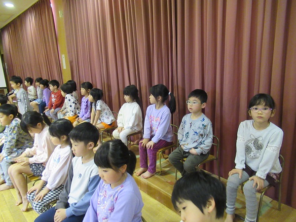 今日は小さいクラスのお友だちが練習を見に来てくれるということで、ちょっぴり緊張気味の子どもたち。