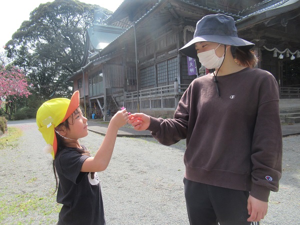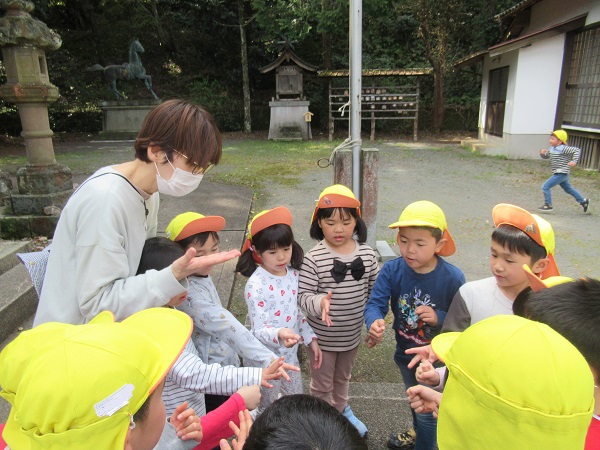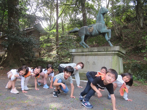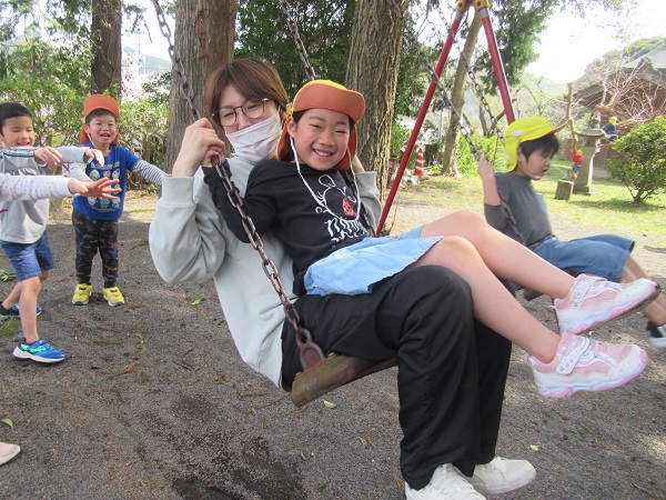 たくさん遊んだ後は、「今までたくさん遊ばせてくれてありがとうございました。小学校に行っても頑張るので見守ってください。」と神様にご挨拶をして帰りました。
