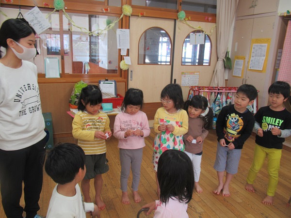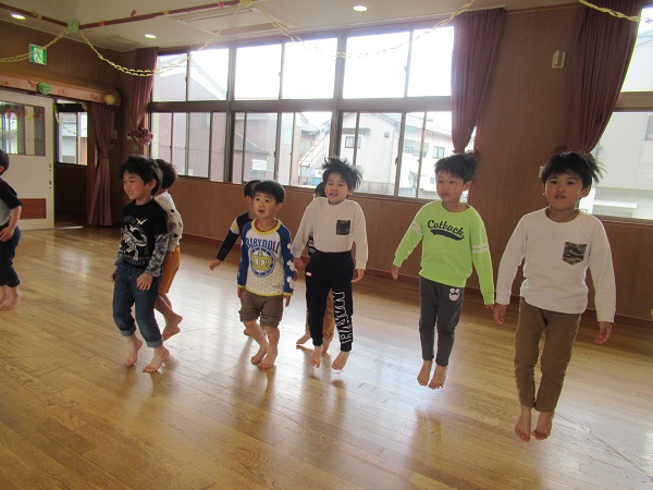 チーム決めをした後は、遊戯室でリズムをしました。