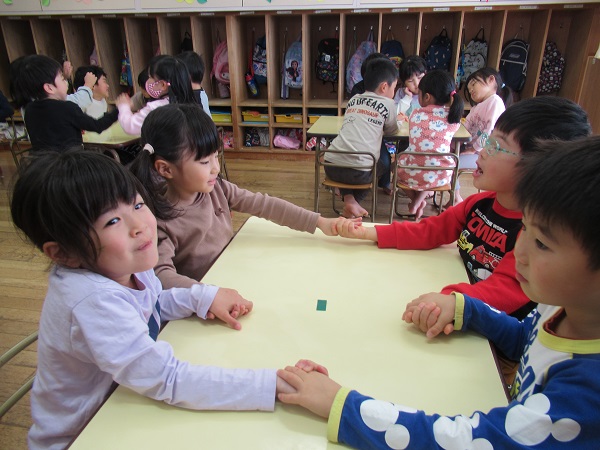 各チーム全員で手を繋ぎ「これからよろしくね」と、ご挨拶をしました。