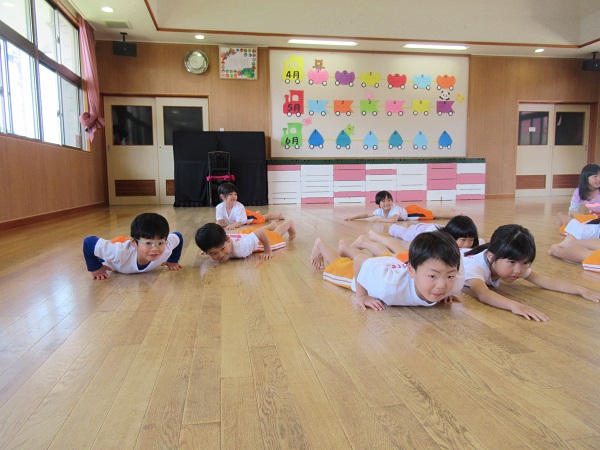 昨年度までは体操をメインに教えてもらっていましたが、今年度は体操にとどまらず、遊びながらしっかり体を動かして、自分の体の使い方を知り、心も体も元気な子になろう!ということで、
