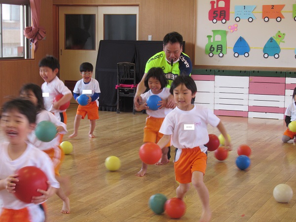 ウォーミングアップが終わったら、今度はボールを使って遊びましたよ。