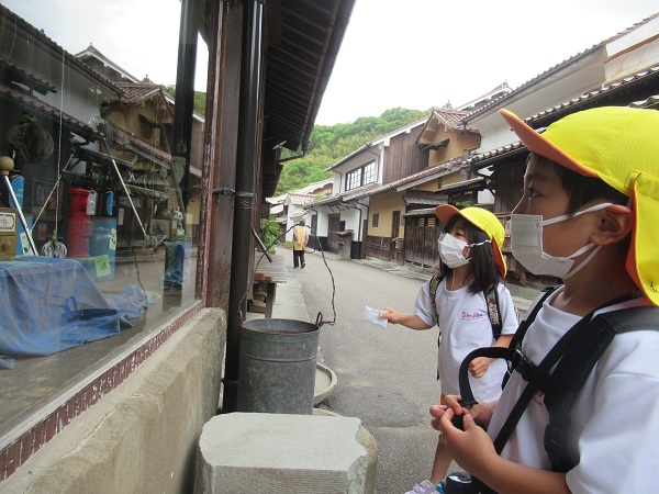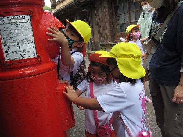 時代を感じるポストや置き物、町の風景など、様々なものに関心を持ちながら歩きました。