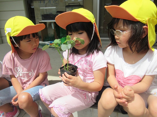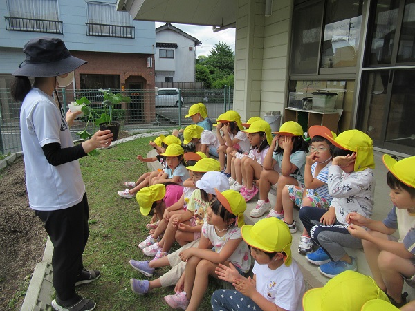 子ども達も実際に苗を見て匂いを嗅いでみました☺