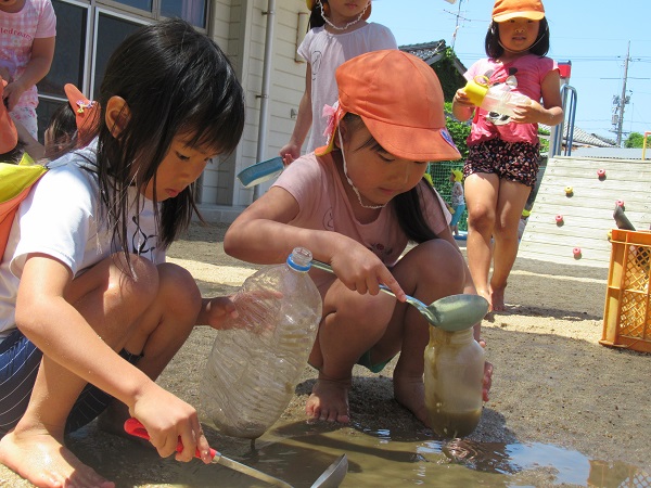 水と土によって作られる『泥』は、その配分や質によってありとあらゆる形に変化していきます。自分が使いたい『泥』の形状にするためには、どのくらい水が必要で、どこの土を使えばよいのか・・・子どもたちは遊びながら試行錯誤して、様々な感触を味わいながらたくさんのことを身につけていきます。