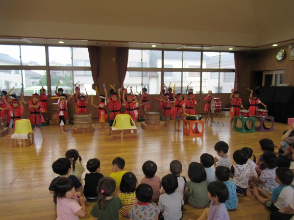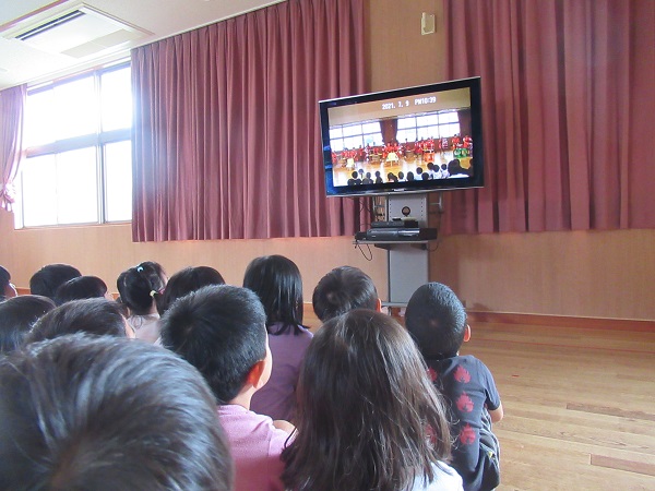 自分が太鼓を叩いたり踊ったりする姿を、初めて客観的に見ることができて嬉しそうな子どもたち■