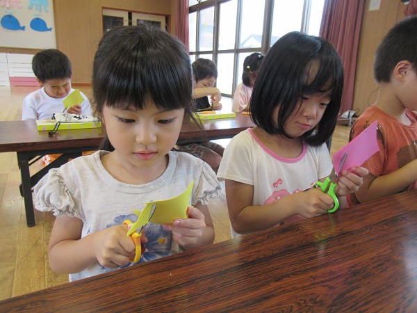 まず、ハート型と星型のどちらかを選んで線に沿ってハサミで切りました。