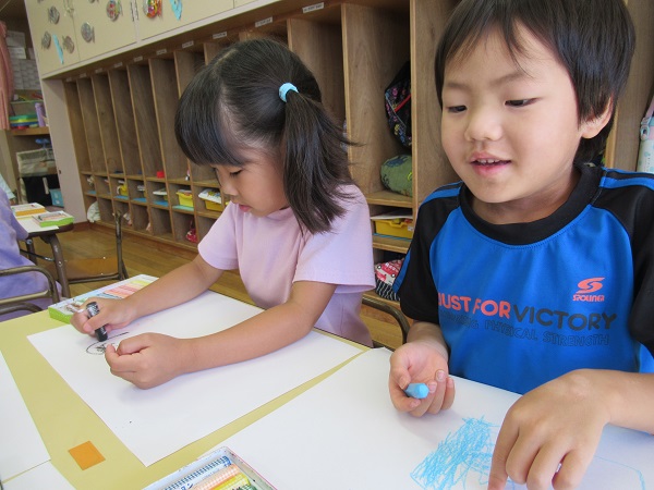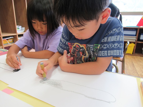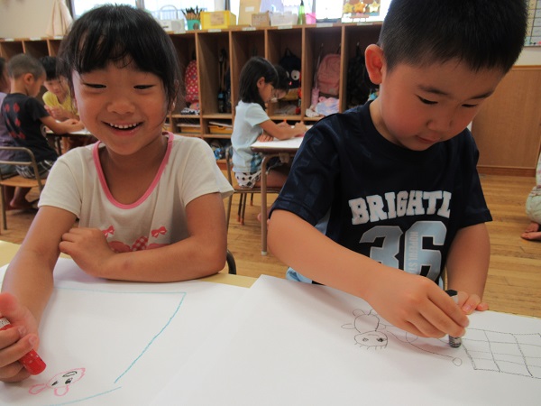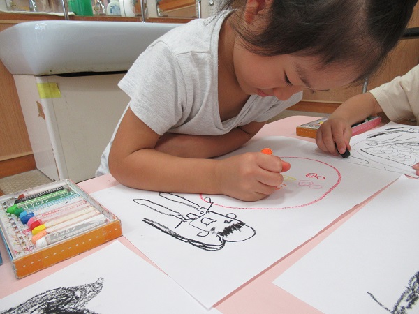 楽しかったことを思い出しながら絵を描き、お友だちとも会話が弾んでいましたよ。