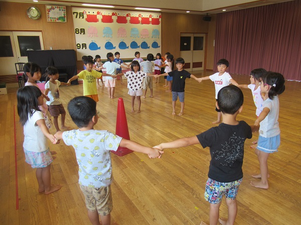 大きな円になったりなどの様々な動きがありますが、しっかり覚えようと頑張っています!